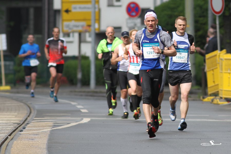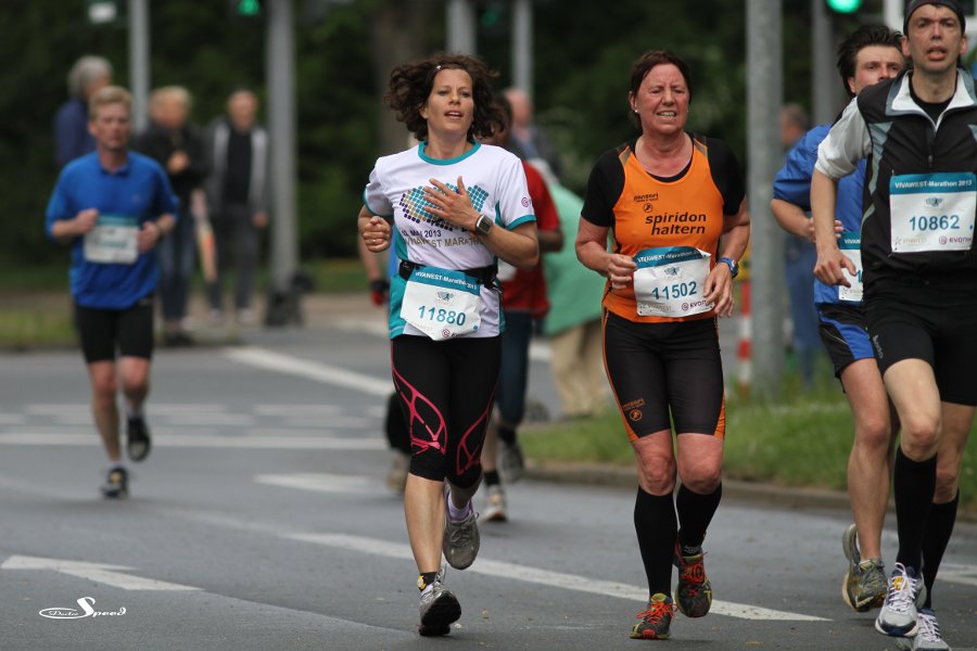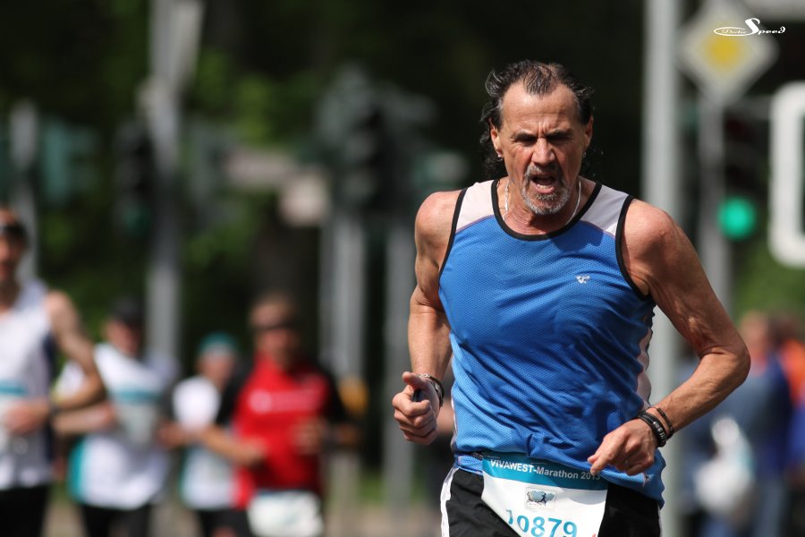 Die Foto sind hauptsächlich von den Teilnehmern des VIVAWEST-Marathons, die nur die halbe Strecke gelaufen sind. Ich wäre nach einem Zehntel schon fix und fertig. Dabei mache ich, wenn auch im gemütlichen Bummeltempo, täglich viele, viele Meter. Also Hut ab vor der Leistung, doch verzeiht mir, dass ich kein Bedürfnis habe, mich einzureihen. Ich bleibe lieber an einer Stelle hocken und dokumentiere eure Leiden.
